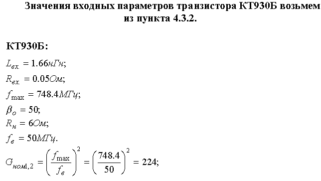 Значения выходных параметров транзистора КТ930А возьмем из пункта 5.2, где рассчитана эквивалентная схема этого транзистора.