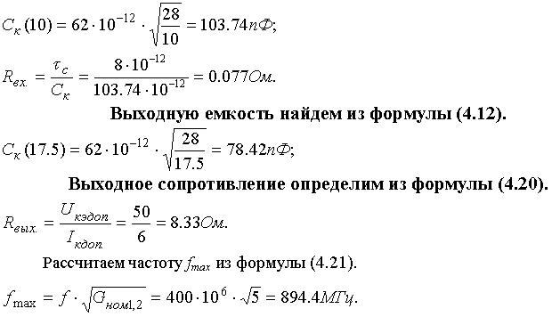 Определим входное сопротивление по формуле (4.12), для этого найдем Ск при напряжении Uкэ = 10В воспользовавшись формулой (4.11.)