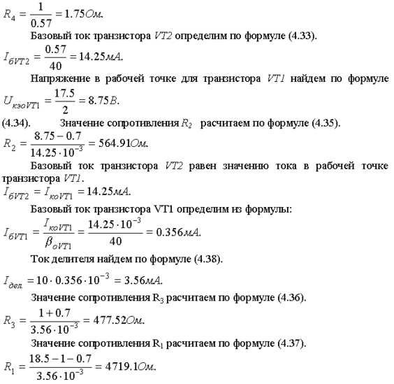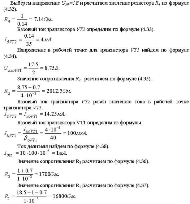 Выберем напряжение UR4=1В и расчитаем значение резистора R4 по формуле (4.32).