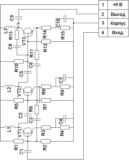 Рисунок 2.3.2- Магистральный усилитель на трёх каскадах.