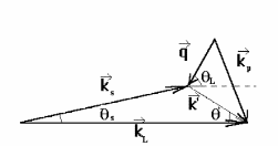 где L-частота пробного излучения, подаваемого на образец, s - частота рассеянного на поляритоне излучения. При этом для наблюдения эффективного прямого процесса должно выполняться условие пространственного синхронизма: