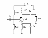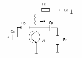 При расчёте элементов схемы выбирается падение напряжения Uэ на сопротивлении Rэ (в интервале 2-5В), расчитываются ток делителя , напряжение питания , сопротивления . Так как взят дроссельный каскад, то координаты рабочей точки равны Uкэо=10.71В и Iко=0.154А.
