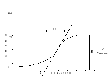 Кривая разгона САР температуры (рис.1.2.) указывает динамические свойства ОР.