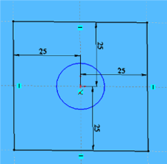 Для создания окружностей используем инструмент «Окружность» панели инструментов «Эскиз». Для создания оси симметрии используем инструмент «Осевая линия» панели инструментов «Эскиз». Простановку управляющих размеров выполняем при помощи инструмента «Автоматическое нанесение размеров» панели инструментов «Эскиз».