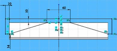 Для окончательного приведения скобы в соответствие техническому заданию, на боковой грани скобы создаём эскиз. Используя инструменты «Осевая линия», «Линия» и «Автоматическое нанесение размеров» панели инструментов «Эскиз», создаём эскиз выреза, как показано на рис. 3.5
