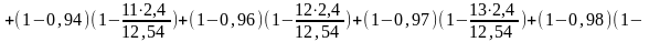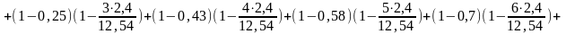 а1 = F1 = 2,4{ (1-0) + (1 – 0,1) + (1 – 0,07) + (1 – 0,25)+(1 – 0,43)+(1 – 0,58) + (1 – 0,7) + (1 – 0,78) + (1 – 0,84) + (1 – 0,88) + (1 – 0,91) + (1 – 0,94)