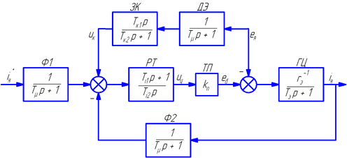 - главная цепь (ГЦ) - апериодическое звено с электромагнитной постоянной времени Т3 и коэффициентом передачи, равным