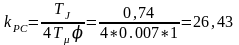 Получаем передаточную функцию П-регулятора. Коэффициент передачи регулятора скорости согласно находится по формуле
