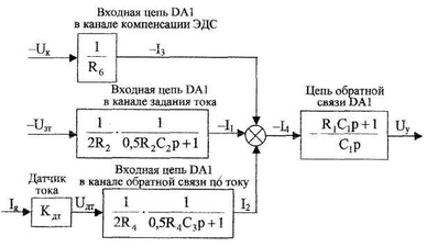 Для обеспечения единичных коэффициентов передачи в каналах задания тока, обратной связи по току и компенсации ЭДС должны выполняться условия
