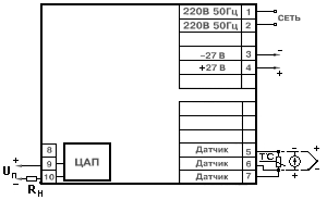 Рис10. Підключення ТРМ1 в DIN-рейковому корпусі з ЦАП