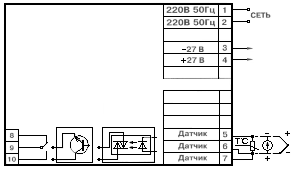 Схема подключения ТРМ1 в DIN-рейковому корпусі