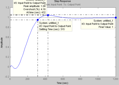 В результаті використання програми Matlab отримали графік перехідного процесу (рис. 7). З графіка видно, що: