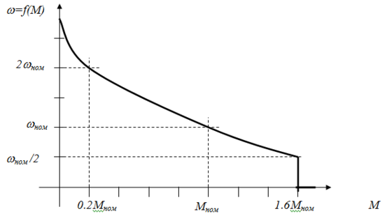 Электромагнитный момент нагрузочного АД должен быть достаточен для гарантированного получения нагрузочных усилий, характерных для электропривода лифта. Развиваемый момент нагрузочного электропривода должен быть ограничен на уровне, предупреждающем поломку или деформацию места соединения валов нагрузочного и испытуемого электродвигателей: