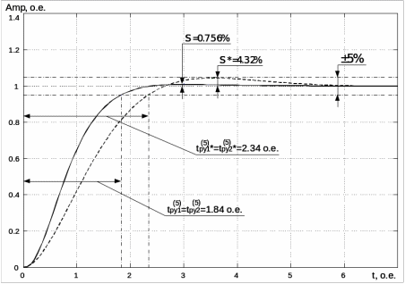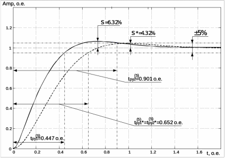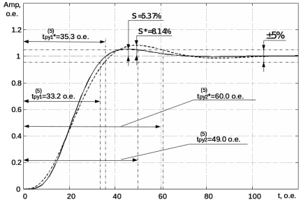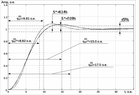 В итоге синтезирован пропорционально-интегральный регулятор со следующими параметрами: