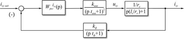 Таким образом, для контура управления составляющей пространственного вектора тока статора