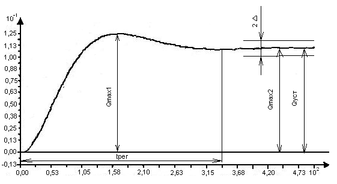 определяется как интервал времени от начала переходной функции до момента, когда отклонение выходной величины от ее нового установившегося значения становится меньше определенной достаточно малой величины ∆: