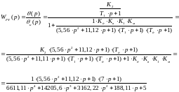 Для рассматриваемого объекта передаточная функция САР температуры в теплице для ошибки по управляющему воздействию: