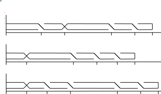 Масштаб не соблюдается, потому что есть блоки, которые выполняются за маленький промежуток времени, а есть и за большой. Из диаграмм видно, что обработка новой порции данных и получение на основании их результата зависит от двух аспектов: ПЭВМ принял данные от устройства ввода и какие данные пришли в устройство ввода (одно из значений равно нулю).