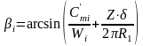Имея функцию лопатки W = f(R) и Cmi = f(R) и значение жидкости лопатки δ1, можно определить угол наклона лопатки: