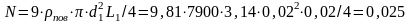 х = ℓ2 = 0,005 м; N = 731,82 + g · ρg · π · d2 · ℓ2/4 = 9,81 · 7900 · 3,14 · 0,012 · 0,002/4 = 731,86