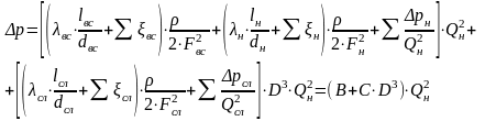 в трубопроводах, потери давления в аппаратах Σ
