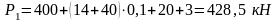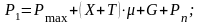 Равнодействующая усилий, действующих на левый эксцентрик сверху вниз (вес суппорта G=20кН; усилие от прижима (пружинного или пневматического) Pn=3кН):