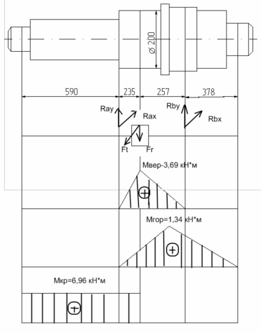 Рисунок 1.2 – Эпюры крутящих и изгибающих моментов вала.