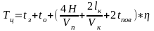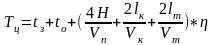 tз -время на застропку груза, сек, tо - время на отстропку груза, сек, tпов - время поворота крана, сек. Н - средняя высота подъема груза, м. lк - среднее расстояние передвижения крана, м. lm - среднее расстояние передвижения тельфера, м. Vn - скорость подъема и опускания груза, м/сек.; Vk - скорость передвижения крана, м/сек.; η - коэффициент, учитывающий совмещение операций.