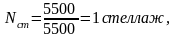 Количество стеллажей, необходимых для размещения груза на складе: