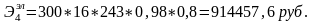 Э3 = 0,01*37500*(0,2 + 0,1) + 0,01*1750000*(0,2 + 0,1) + 0,01*450000*(0,2 + 0,1) = 112,5 + 5250 + 1350 = 6712,5 руб.
