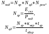 Nxp- число поддонов, необходимое для непосредственного хранения груза на складе; Рпод - вес груза на поддоне, т; txp- срок хранения груза на складе, сут; tобор- время оборота поддонов, сут.; Nрем- число поддонов, необходимое на ремонт.