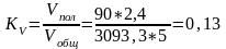 Использование объема складского помещения характеризуется коэффициентом Kv , т.е. отношением полезного объема, занятого материалом Vпол к общему объему склада Vобщ.: