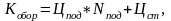 Цпс, Цконт - стоимость 1 комплекта пакетирующих средств и 1 контейнера; Кобор - общие капиталовложения в поддоны, стеллажное и другое оборудование для складирования грузов, руб.;