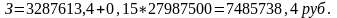 Э = 15333333,33 + 120000 + 6712,5 + 1182900,9 + 0 +444666,67 = 3287613,4 руб.15