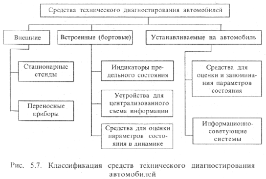 Внешние СТД, т. е. не входящие в конструкцию автомобиля, в зависимости от их устройства и технологического назначения могут быть стационарными или переносными. Стационарные стенды устанавливаются на фундаменты, как правило, в специальных помещениях, оборудованных отсосом отработавших газов, вентиляцией, шумоизоляцией. Переносные приборы используются как в комплексе со стационарными стендами, так и отдельно для локализации и уточнения неисправностей на специализированных участках и постах ТО и ремонта.
