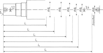 Наиболее часто используемыми чистовыми технологическими базами для деталей типа вал являются центровые отверстия, т.к. основным размером на вал является, как правило, его диаметр. Установка по центровым отверстиям позволяет «поймать» ось детали и при этом погрешность базирования на диаметр будет нулевой.