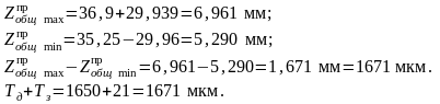 Т.к. левая часть уравнения совпадает с правой, то расчет общего припуска выполнен правильно.