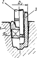 Для более надежного направления пуансона при прошивке применяют кольца, обеспечивающие, однако, центрование только в начальный момент. После прошивки в камору корпуса снаряда наливают воду для отслаивания окалины, которая удаляется из каморы продувкой.