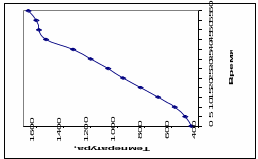 В температурных условиях рабочего пространства сталеплавильной печи собственным излучением шомпала, температура наружной поверхности которого не превышает 500° С, можно пренебречь. Поэтому температур перепад темпертур ∆t между сечениями термоцилиндра в которых расположены горячие и холодные спаи термопар определяется уравнением: