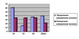 Диаграмма 1 – Вариация прочности на разрыв в зависимости от направления волокон.