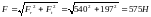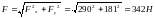 Действующая на подшипник сила F определяется через свои проекции :