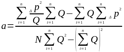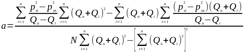 Численный метод определения фильтрационных коэффициентов применяется при значительном числе точек, когда число режимов превышает 10. При этом режимные точки, явно отличающиеся от общей закономерности P2 и Q из расчёта исключаются. Формулы для определения фильтрационных коэффициентов имею вид: