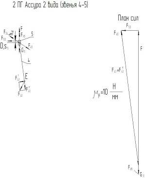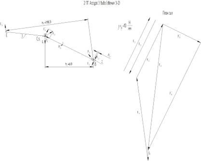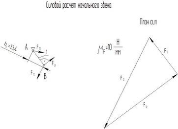 Все силы, действующие на звенья механизма, включая силы инерции и искомую уравновешивающую силу, переносим параллельно самим себе в одноимённые точки повёрнутого плана. Если на звено действует момент сил, то этот момент следует предварительно представить на звене механизма как пару сил, вычислив их величины: