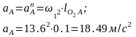 Ускорение точки А кривошипа :