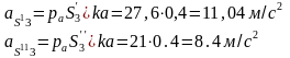 Значения ускорений из плана ускорений.