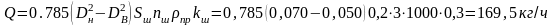 Dн; Dв - соответственно наружный и внутренние диаметры шнеков, м