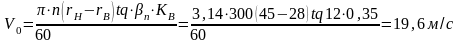 где d0 - диаметр одного отверстия, z0 - количество отверстий ножевой решетки, шт, V0 - скорость продвижения продукта через отверстия первой ножевой решетки. Скорость перемещения гайки относительно винта вдоль его оси: