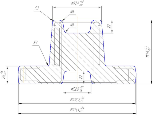 К детали предъявляются высокие требования по точности и качеству обработанной поверхности. При обработке зубчатого венца требуется обеспечить шероховатость поверхности эвольвенты не ниже Ra 1,25. Точность обработки внешней поверхности ступицы должна соответствовать 6-му квалитету и шероховатости Ra 1,25, а внутренняя поверхность 7-му квалитету и шероховатости Ra 0,4. В конструкции детали предъявляются требования к форме и взаимному расположению поверхностей.