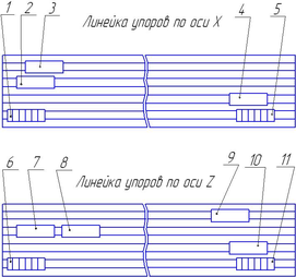 Упор 3 – для изменения скорости перемещения ползушки при выходе в «0» по оси X.