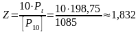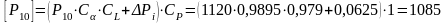 (тут P10 - допустима колова сила для передачі з поліклиновим пасом з 10 ребрами при передаточному відношенні и = 1; куті обхвату малого шківа α1 = 180° і еталонною довжиною LO:L10 = 1120 H)